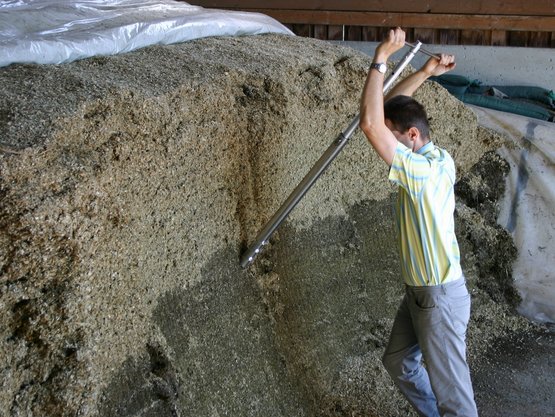 - Oder von frischer Anschnittsfläche Futter über den ganzen Querschnitt verteilt entnehmen. Hierbei ist keine Verdichtungsmessung möglich