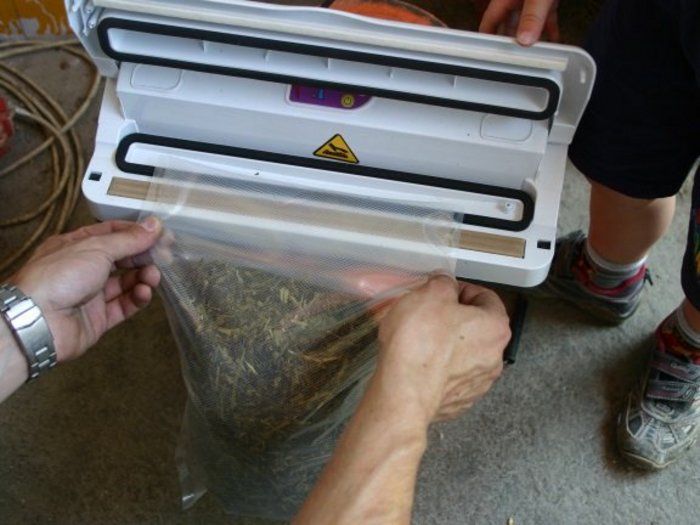 Probe in luftdichten Plastiksack geben und möglichst viel Luft herausdrücken. Sack zubinden oder zukleben. Alternativ kann das Futter auch vakuumverpackt werden (wenn Gerät vorhanden - Beschriftung der Probe